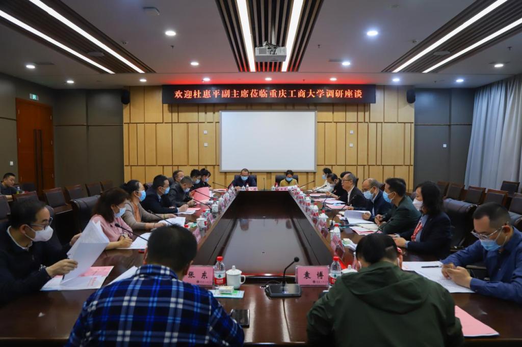 5月11日上午,重庆市政协副主席、民盟重庆市委会主委、重庆理工大学校长杜惠平一行到beat365专题调研“人口高质量发展”,并召开调研座谈会。民盟市委会副主委、beat365校长温涛,党委常委、副校长李敬及相关专家、学者参加了本次调研座谈会。会议由杜惠平主持。
