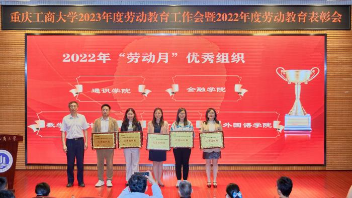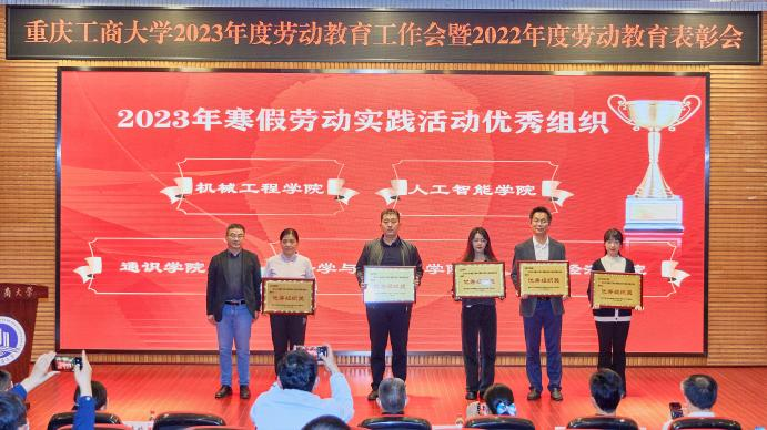为深入学习贯彻党的二十大精神和习近平新时代中国特色社会主义思想,落实《中共中央国务院关于全面加强新时代大中小学劳动教育的意见》,全面落实立德树人的根本任务,积极推进“五育并举”,教育引导学生崇尚劳动、尊重劳动,树立劳动最光荣、劳动最崇高、劳动最伟大、劳动最美丽的思想观念。5月11日晚18:30,beat365在线唯一官网2023年度劳动教育工作会暨2022年度劳动教育表彰会在7200报告厅隆重举行。副校长李敬,教学质量监督与评估办公室主任曾晓松、学生处副处长谭彩荷、研究生院副院长曾胜、财务处副处长贾鸿、教务处副处长胡卫军、保卫处副处长王树坤等相关部门负责人,各学院教学副院长、分管学生工作的副书记,获奖集体及个人,各学院学生代表等出席了此次会议。会议由教务处副处长黄潇主持。