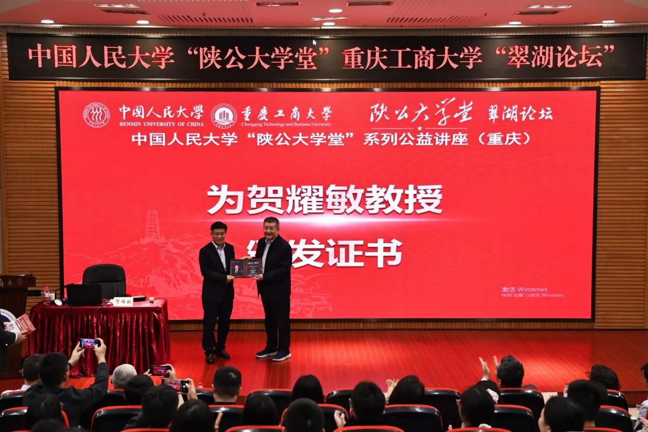 讲座结束后,曾维伦向贺耀敏教授颁发荣誉证书。