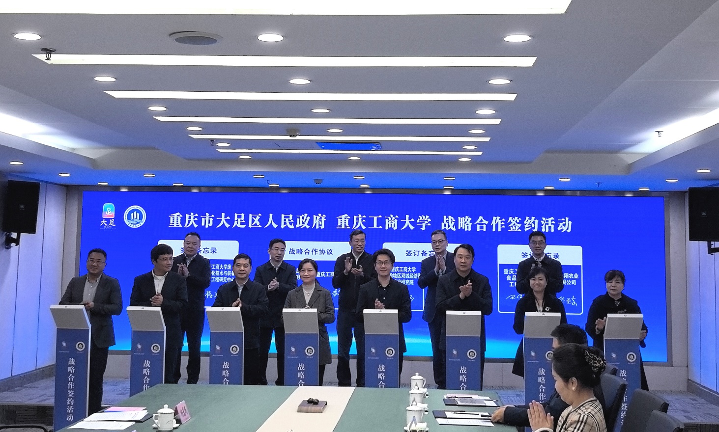 学校相关职能部门、学院以及科研机构负责人,大足区级相关部门、重点企业负责人参加签约仪式。