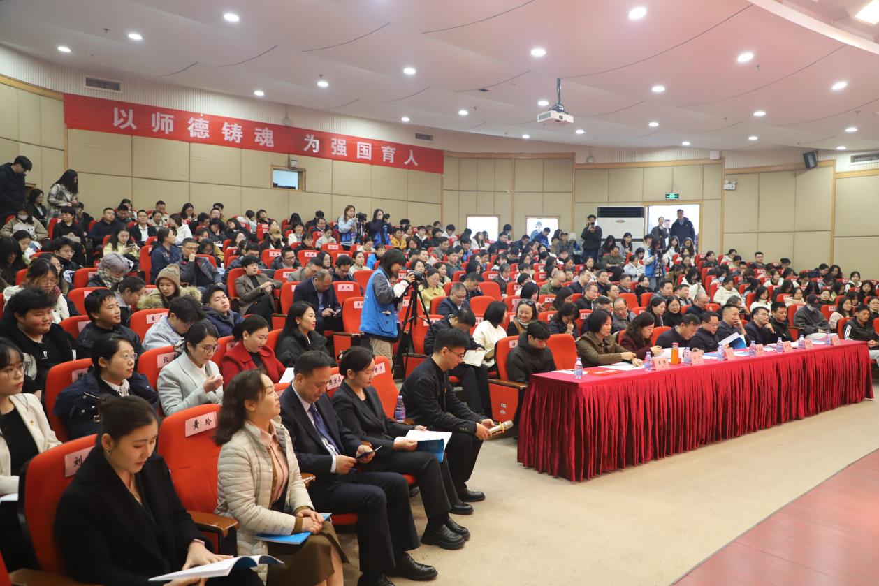 曾维伦作总结讲话。他首先向各位获奖选手表示热烈祝贺,向辛勤付出的组织者和评委们表示衷心感谢。他指出,当前全校上下正深入学习贯彻党的二十届四中全会精神,在这一关键时期,迫切需要一支高素质的教师队伍,为强国育人事业提供支撑。本次演讲比赛既展现了新时代高校教师的理想追求,又诠释了教育家精神的丰富内涵。围绕教师如何践行“以师德铸魂,为强国育人”,他强调,一要心有大爱,以教育家精神引领育人使命,将个人理想自觉融入国家发展与民族复兴的伟大事业,成为学生成长道路上的“大先生”。二要身怀匠心,深耕教学一线,积极推进信息技术与教育教学深度融合,着力培养学生的创新实践能力,成为“经师”与“人师”相统一的复合型教师。三要心怀仁爱之心,尊重学生的个性差异,做到因材施教,成为学生的学业指导者、生活守护者、心灵陪伴者。他殷切希望全校教职工大力弘扬教育家精神,以更加饱满的热情、更加务实的作风、更加高尚的师德,为学校高质量发展和教育强国建设贡献更大力量。