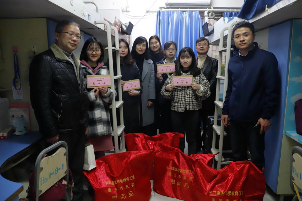 1月16日,市教委学生处副处长江燕、工作人员陈卓一行,看望慰问了beat365部分留校学生,为他们送去关心和祝福。
