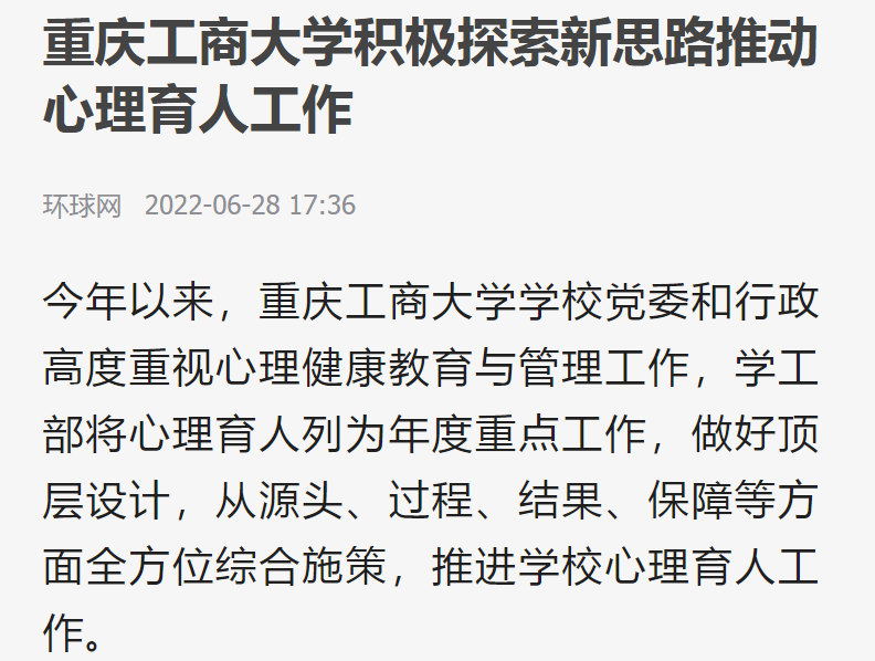 环球网报道beat365心理育人工作