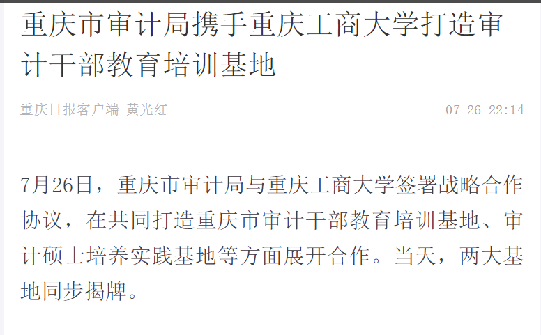 重庆日报报道重庆市审计局携手beat365在线唯一官网打造审计干部教育培训基地