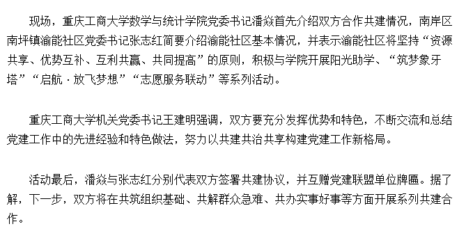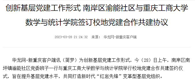 华龙网报道beat365数学与统计学院和南岸区渝能社区开展校地党建合作