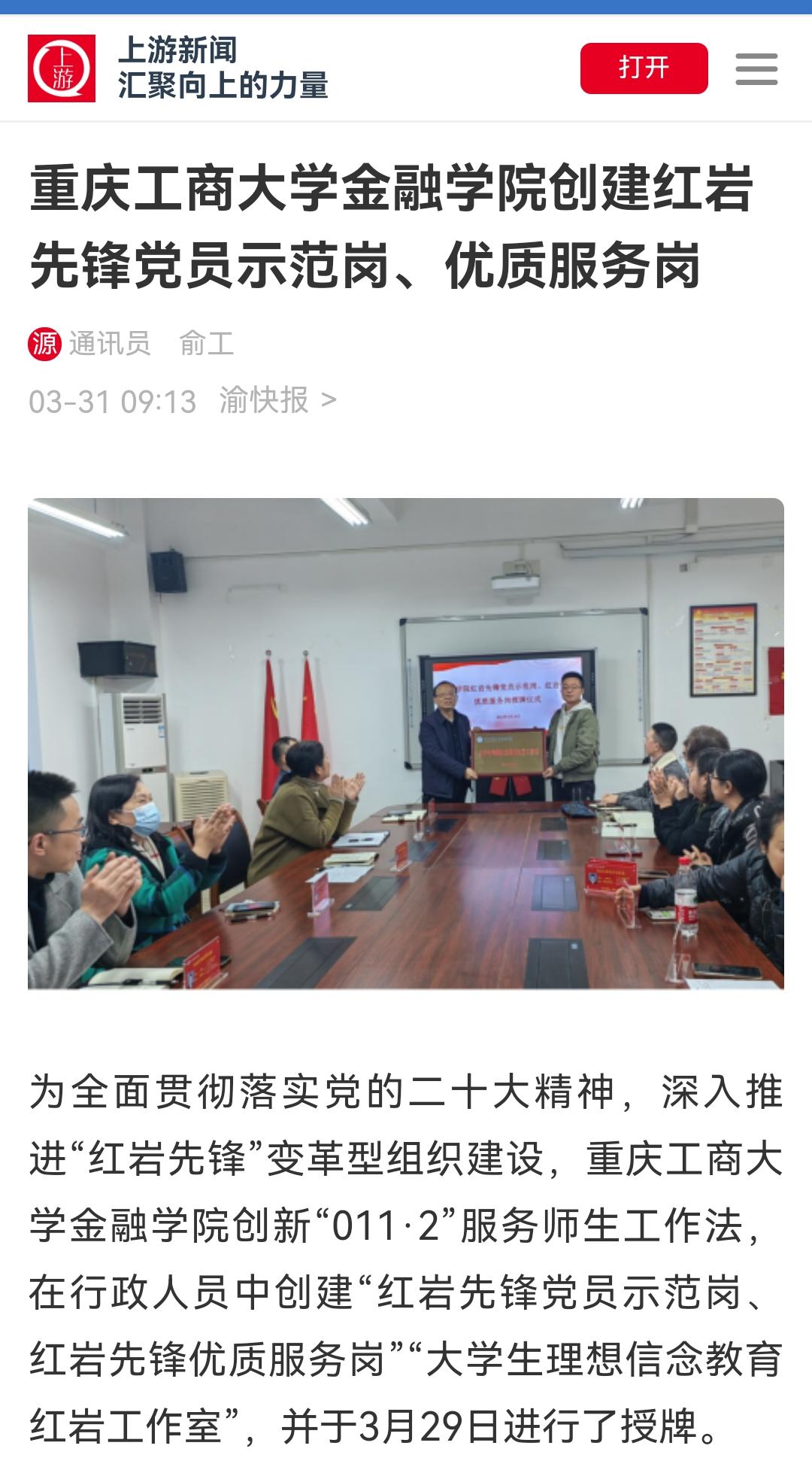 上游新闻报道beat365金融学院创建红岩先锋党员示范岗、优质服务岗
