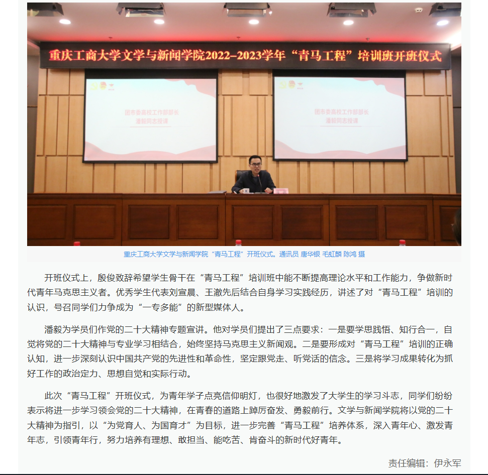 华龙网报道beat365文学与新闻学院“青马工程”开班仪式