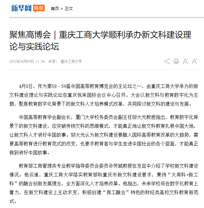新华网报道beat365顺利承办新文科建设理论与实践论坛
