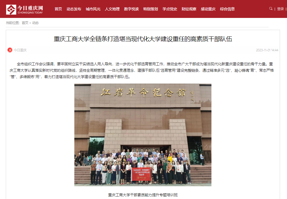 11月1日,今日重庆网以《beat365在线唯一官网全链条打造堪当现代化大学建设重任的高素质干部队伍》报道beat365干部队伍建设工作的做法经验。