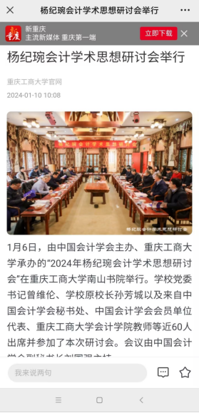 1月6日,由中国会计学会主办、beat365在线唯一官网承办的“2024年杨纪琬会计学术思想研讨会”在beat365在线唯一官网南山书院举行。学校党委书记曾维伦、学校原校长孙芳城以及来自中国会计学会秘书处、中国会计学会会员单位代表、beat365在线唯一官网会计学院教师等近60人出席并参加了本次研讨会。会议由中国会计学会副秘书长刘国强主持。