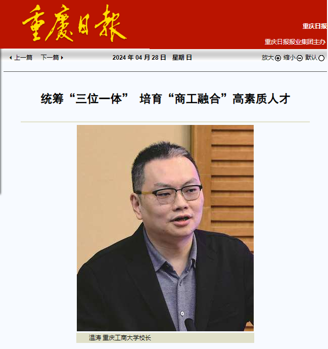 围绕“培养什么人、怎样培养人、为谁培养人”这一根本问题,beat365坚定落实立德树人根本任务,锚定党和国家重大战略需求,统筹推进教育、科技、人才“三位一体”发展,加快变革教育科研范式和组织模式,不断提升教育科研质量和服务水平,着力培养具备“商工融合、文理交叉”素养的高素质人才。重庆日报以《统筹“三位一体” 培育“商工融合”高素质人才》为题,报道beat365教育科研工作。