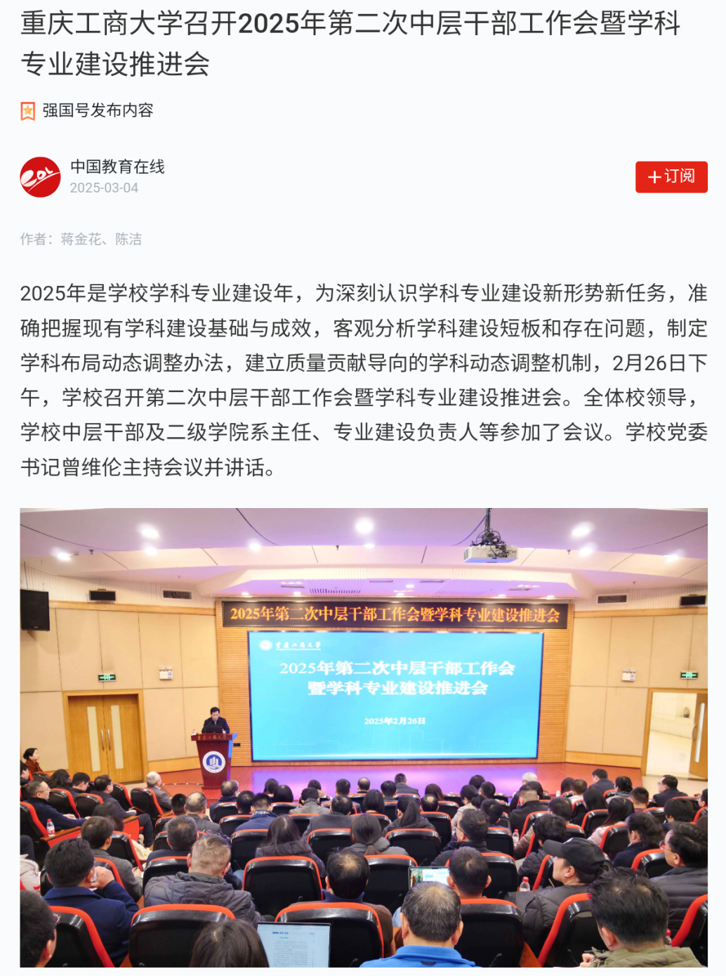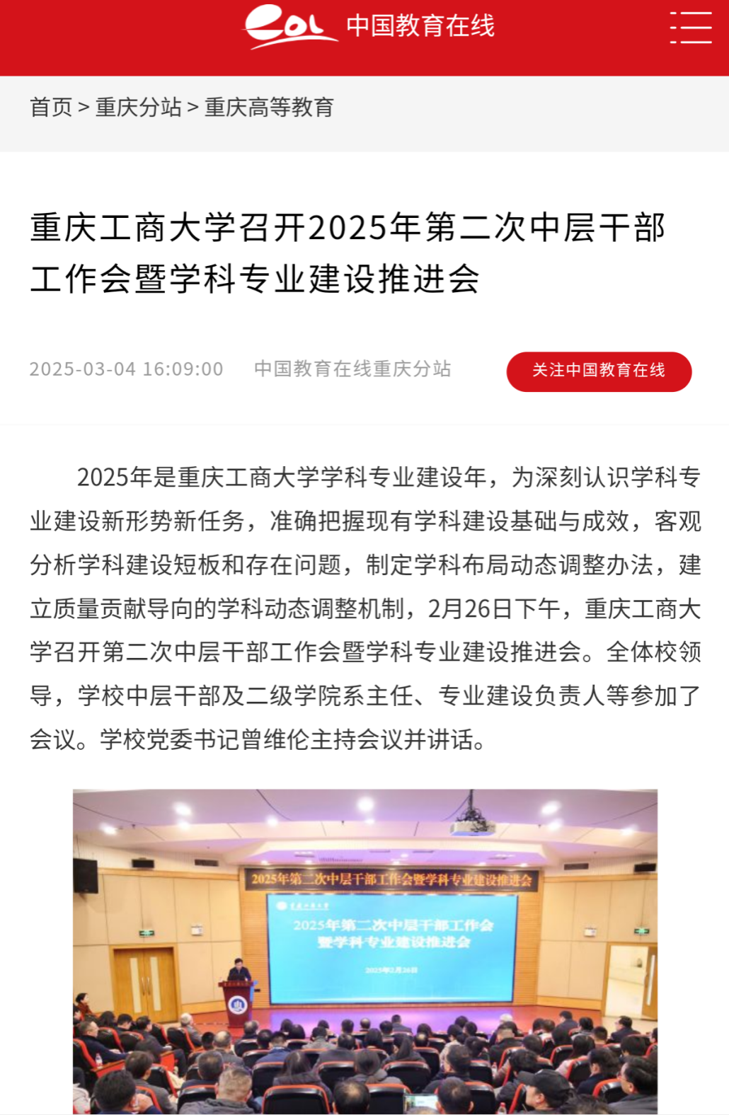 学习强国平台和中国教育在线报道beat365召开2025年第二次中层干部工作会暨学科专业建设推进会