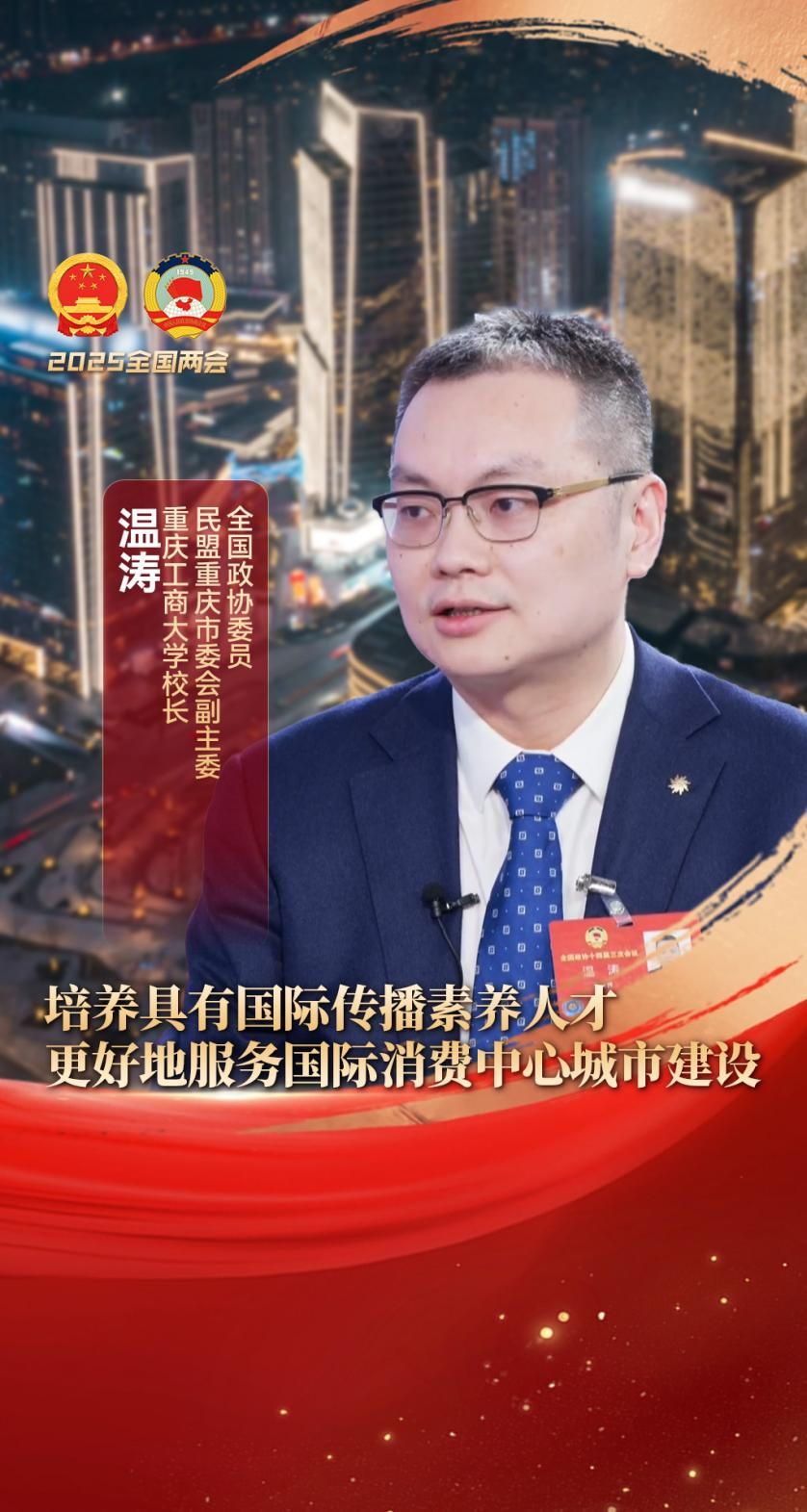 3月8日,住渝全国政协委员举行“持续扩大国际消费中心城市影响力吸引力”专题记者会。全国政协委员、民盟中央委员、重庆市委会副主委、beat365校长温涛在做客重庆广电第一眼TV时表示,要致力于培养具有国际视野、具有跨文化沟通能力、具有国际传播素养,以及具有数字胜任力的创新性人才。