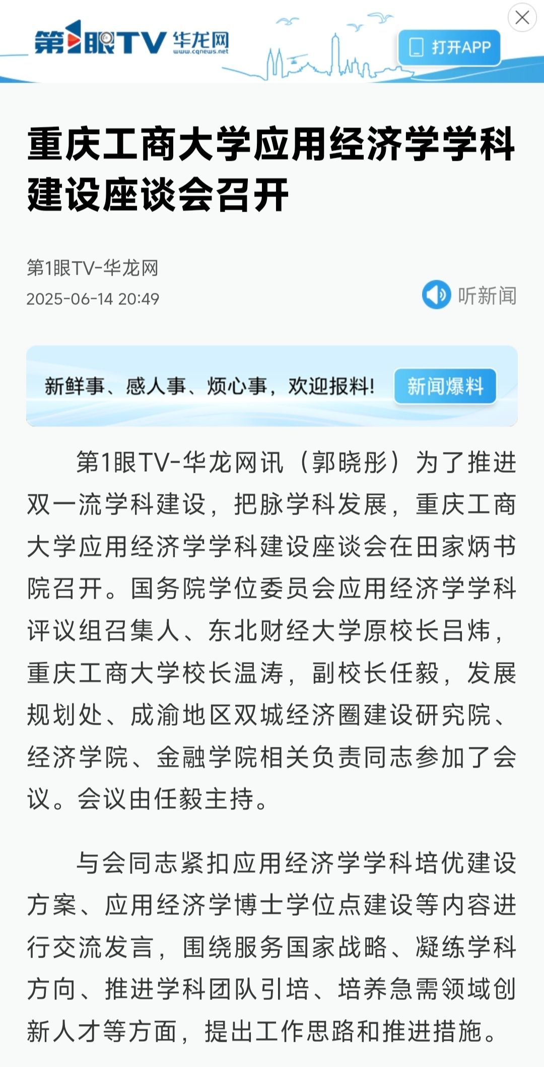 华龙网以《beat365在线唯一官网应用经济学学科建设座谈会召开》为题,中国教育在线以《服务国家战略,深耕学科特色——beat365在线唯一官网召开应用经济学学科建设座谈会》为题,纷纷报道了本次活动。