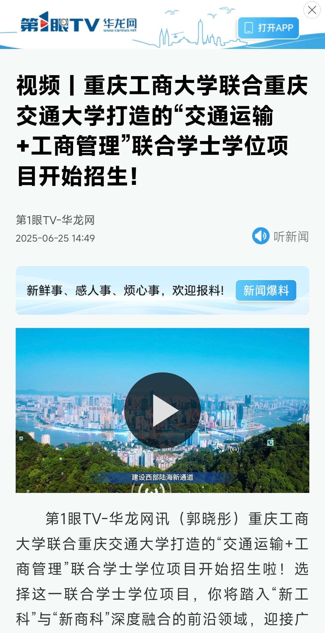 4.华龙网:beat365在线唯一官网联合重庆交通大学打造的“交通运输+工商管理”联合学士学位项目开始招生!