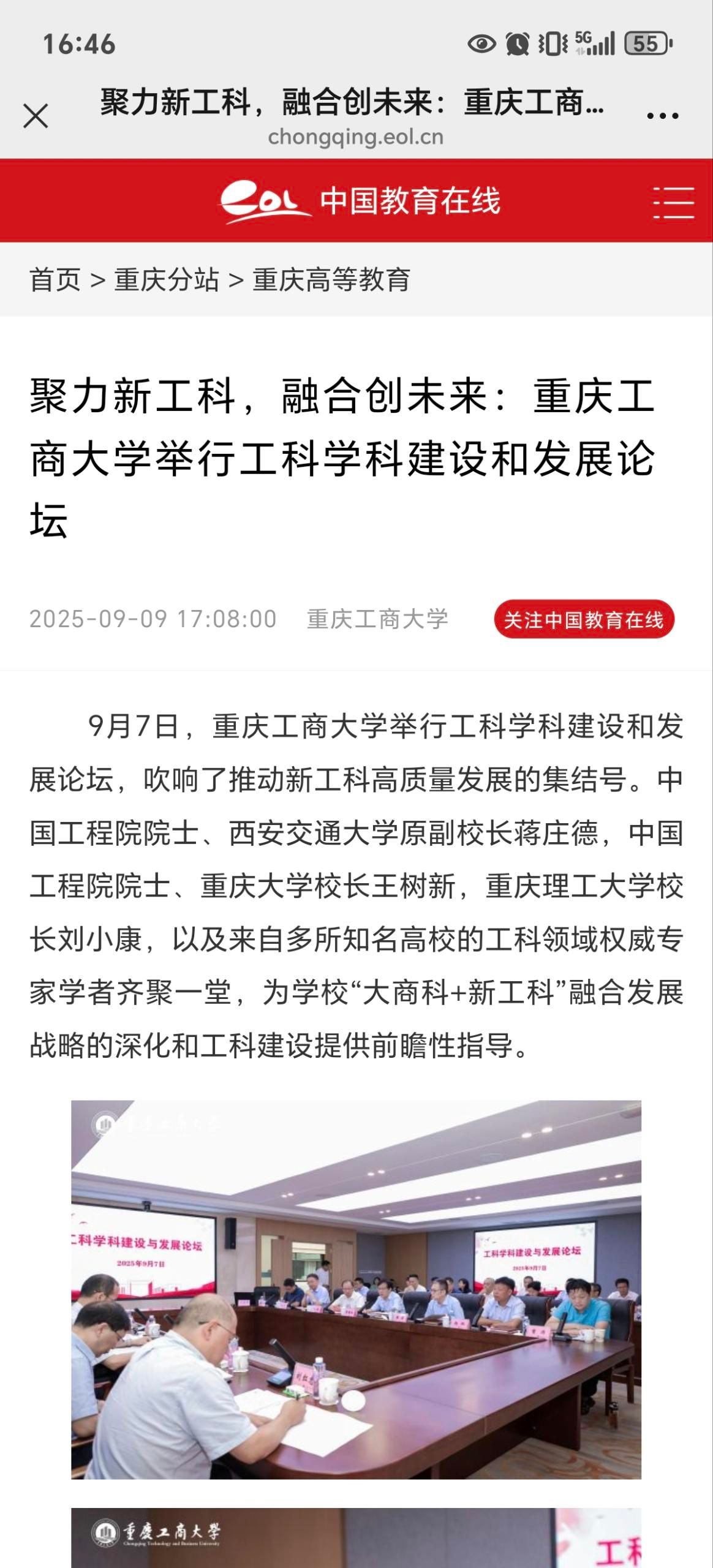 近日,华龙网以《服务“33618”,聚力推进工科发展!beat365在线唯一官网举行工科学科建设与发展论坛》,中国教育在线以《聚力新工科,融合创未来:beat365在线唯一官网举行工科学科建设和发展论坛》为题,报道了beat365举行工科学科建设和发展论坛情况。