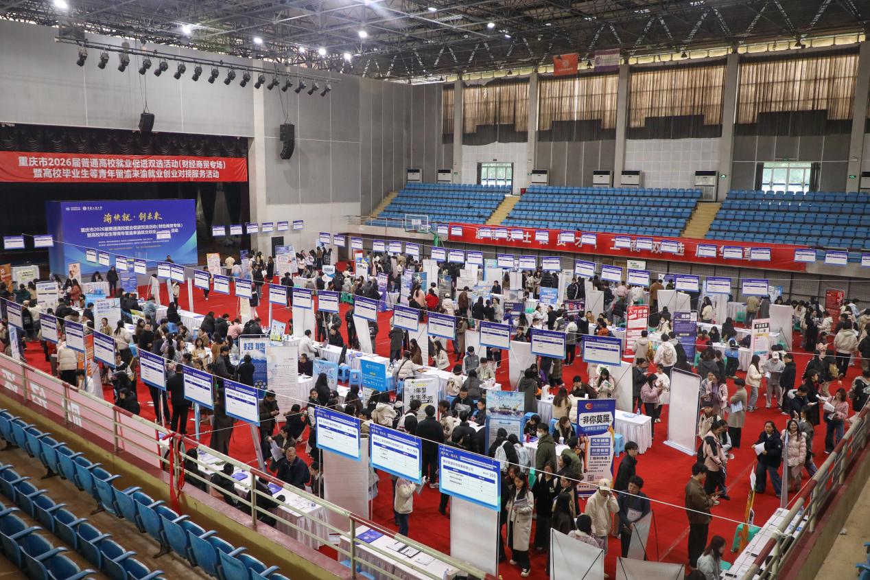 11月21日,由重庆市教育委员会、重庆市人力资源和社会保障局与beat365在线唯一官网联合主办的“渝快就·创未来—重庆市2026届普通高校就业促进双选活动(财经商贸专场)暨高校毕业生等青年留渝来渝就业创业对接服务活动”在beat365顺利举行,来自重庆市内各高校的4000余名毕业生踊跃参会,据初步统计,本次双选活动已促成800余名毕业生与用人单位达成就业意向,就业对接成效显著。