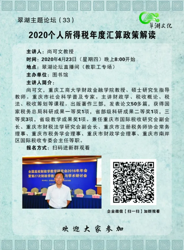 翠湖主题论坛(33)2020个人所得税年度汇算政策解读
