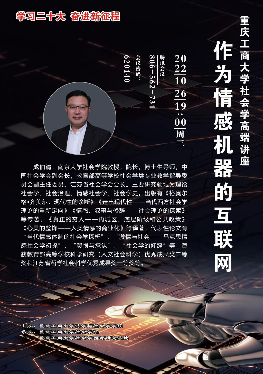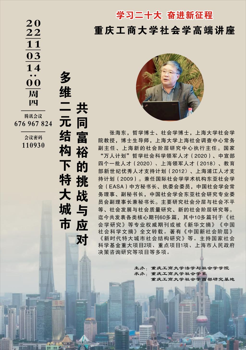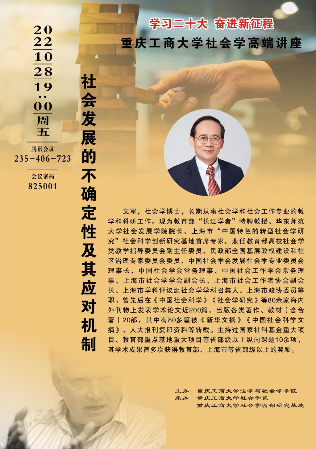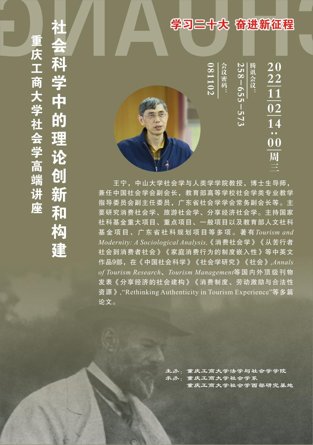 学习二十大,奋进新征程。 为推动beat365在线唯一官网社会学重庆市“十四五”重点学科及一流专业建设,beat365在线唯一官网社会学系、beat365在线唯一官网社会学西部研究基地特举办社会学系列论坛。论坛为期一个月(2022.10.20-11.20),共计10场。论坛负责人:罗兆均(邮箱:545319529@qq.com)。具体安排如下: