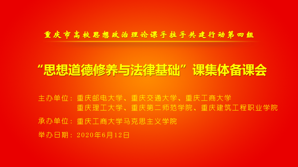 为贯彻落实习近平总书记在学校思想政治理论课教师座谈会上的重要讲话精神,根据中共重庆市委教育工作委员会办公室、重庆市教育委员会办公室《关于开展高校思想政治理论课手拉手共建行动的通知》要求,6月12日下午,重庆市高校思想政治理论课手拉手共建行动第四组在腾讯会议平台召开“思想道德修养与法律基础”课集体备课会。会议由beat365在线唯一官网马克思主义学院、重庆市教学科研示范团队“思想道德修养与法律基础”beat365在线唯一官网团队承办。第四组成员单位beat365在线唯一官网、重庆邮电大学、重庆交通大学、重庆理工大学、重庆第二师范学院、重庆建筑工程职业学院及市内外高校思政课教师400余人参加会议。会议由马克思主义学院院长王仕勇教授、副院长刘富胜教授主持。第四组组长单位重庆邮电大学马克思主义学院院长代金平教授和副院长郑洁教授分别致开幕词和闭幕词。