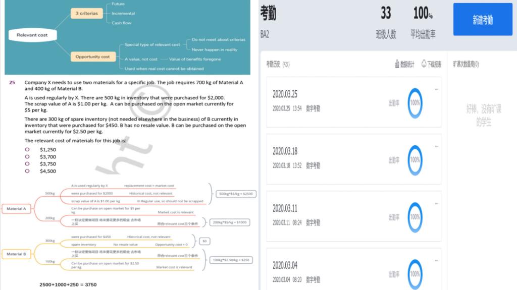 与此同时,会计学院联合楷博财经ACCA/CIMA的学术团队积极开展教学研讨,共同探索线上教学有可能出现的问题,并制定了多套备案和解决方法,以确保开学后能顺利进行教学。针对在线教学模式进行了课堂设计与内容安排,与学生们一起多次试运行了“课堂派”直播平台。按照“资源情况分类开课,教学要求与教学质量不降低,注重学生主动学习的习惯养成和学习能力的培养”的要求,3月2日楷博财经面向会计学院ACCA/CIMA专业学生正式开课。本期授课选派教学经验丰富、亲和力强的教师实行直播授课,采取在线考勤、提问、抢答、随堂测试、在线答疑、课堂作业等形式实施线上教学活动;课后通过直播回放进行反复学、不断学,利用试题库、作业题加强对知识点的理解和巩固;利用QQ交流群,安排专业辅导老师开展学习讨论和课后答疑,着重加强课程和作业中出现的难点、重点内容的讲解;每周进行一次问卷调查,集中收集学生对线上课程教学情况的意见和建议,及时掌握线上教学动态,确保线上教学效果。