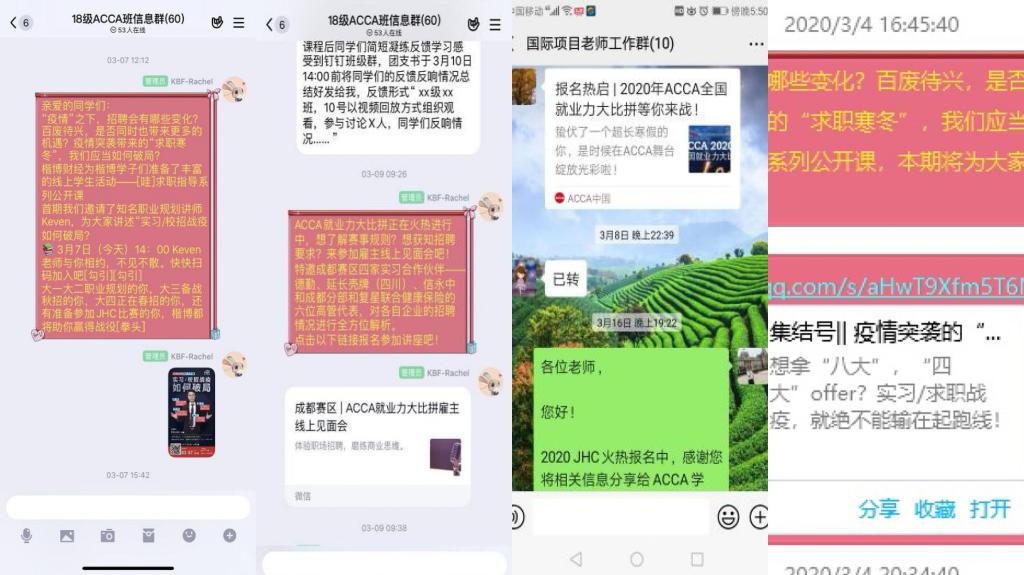 疫情特殊时期,除了保障国际项目的在线正常教学外,ACCA/CIMA国际项目中心还联合楷博财经为同学们提供完善的学生服务,坚持全员到岗在线为同学们答疑解惑,关注疫情之下最新的政策变化信息,让同学们第一时间了解最新考试政策,及时调整自己的考试计划;针对线上教学提供一系列教辅支持,线上教学平台使用指南,通知同学们按时上课;引导同学们关注疫情影响下的“春招”等就业招聘信息,开展“求职规划”“ACCA就业力大比拼”“CIMA商业精英挑战赛”等线上讲座,以帮助想要求职或实习的同学做好准备。