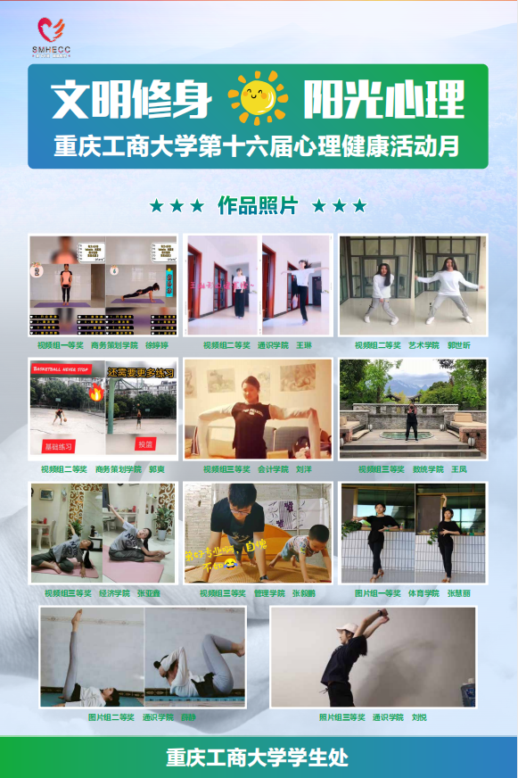 今年,在结合疫情防控的形势下,党委学工部、学生处精心策划,各学院积极承办,共开展了包括心灵诵者、心理涂鸦、心理电影展、心理微课大赛、心理主题摄影展、心理征文大赛、心理素质拓展、心理微电影大赛在内共9项校级心理活动。自活动开展以来,得到了全校学生的广泛关注和大力支持,累计参与人数约2万人次,各类作品精彩纷呈。同时,学生处、大学生心理健康与咨询中心将本次活动的成果做成了展板,在校内进行展示,体现了beat365大学生奋发蓬勃、积极向上的精神风貌。