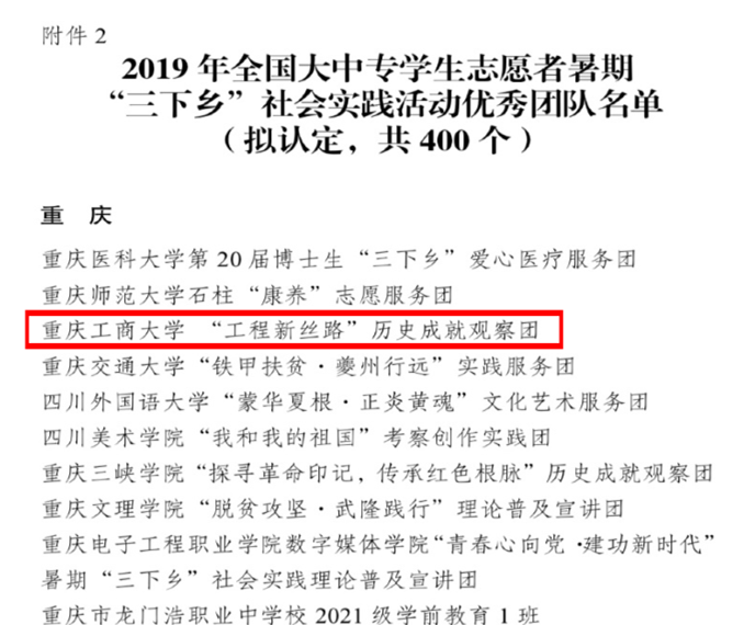 近日,2019年全国大中专学生志愿者暑期“三下乡”社会实践活动总结通报结果及各项成果遴选活动结果公示,beat365BIM协会“工程新丝路”历史成就观察团荣获2019年全国大中专学生志愿者暑期“三下乡”社会实践活动优秀团队称号。
