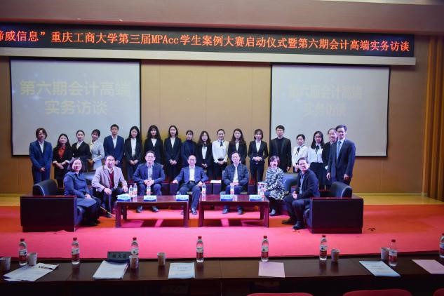 11月16日上午,会计学院在田家炳50209报告厅隆重举行“谛威信息”beat365在线唯一官网第三届MPAcc学生案例大赛启动仪式暨第六期会计高端实务访谈。副校长兼会计学院院长宋豫教授,会计学院党委罗惠玉书记等学院领导,大信会计师事务所西南业务总部副总经理刘建秋先生、浪潮集团重庆公司副总经理王宏波先生、重庆渝富资产经营管理集团有限公司集团总法律顾问彭作富先生、天健会计师事务所重庆分所授薪合伙人杨朝玉先生、重庆市审计局企业审计处副处长汪宇鸿女士等10余名事业导师参加了会议。