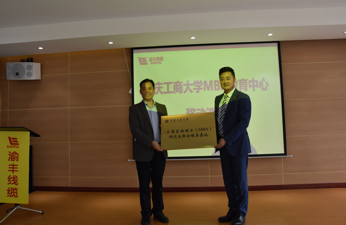 “beat365在线唯一官网-重庆渝丰电线电缆有限公司工商管理硕士研究生联合培养基地”已获批重庆市研究生联合培养基地,在学员参观完企业后,校企双方进行了联合培养基地授牌仪式。在授牌仪式上,曾令果总经理代表重庆渝丰电线电缆公司进行了致辞,他对MBA学员的到来表示热烈欢迎,非常高兴同beat365开展MBA研究生联合培养,祝愿MBA研究生联合培养基地早日开花结果。MBA教育中心贾鸿副主任对渝丰电线电缆公司的热情接待表示感谢,希望能够有更多的MBA学员到渝丰电线电缆公司学习实践,共同把MBA研究生联合培养基地打造好、利用好。