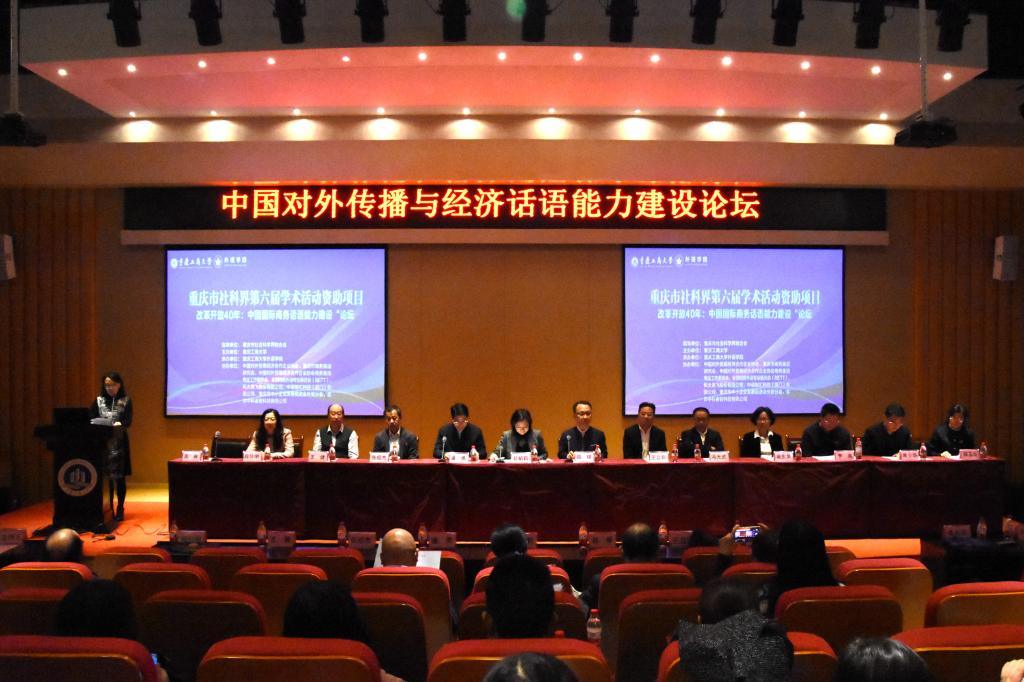 11月2日,由重庆市社会科学界联合会指导,beat365在线唯一官网主办,学校外语学院承办的重庆市社科联第六届学术活动资助项目“中国对外传播与经济话语能力建设论坛”在beat365成功举办。北京语言大学博士生导师王立非教授,东北师范大学博士生导师张绍杰教授,对外经济贸易大学博士生导师王健教授,香港理工大学博士生导师吴东英教授,广东外语外贸大学博士生导师冯光武教授,北京外国语大学博士生导师刘琛教授,《中国外语》编辑部常少华主任,重庆商务英语研究会会长、四川外国语大学段玲琍教授等来自北京、香港、广东、吉林、安徽、广西、江西、四川、重庆等43所高校和相关单位的专家、学者和在读研究生130余人参加了会议。