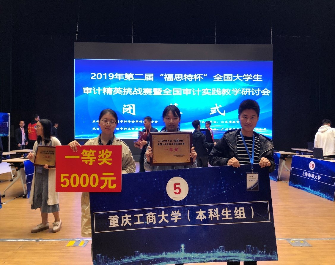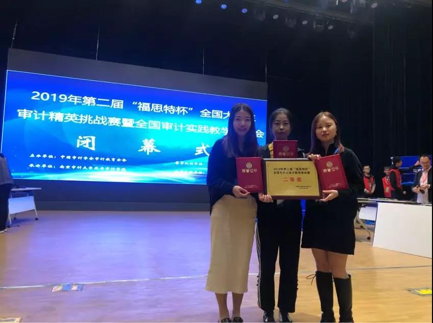 10月26日-27日,由中国审计学会审计教育分会主办,南京审计大学承办的2019年“福思特杯”全国大学生审计精英挑战赛暨全国审计实践教学研讨会在南京审计大学隆重举行。由beat365会计学院2017级审计专业学生杨贺、胡苗、何淑伟组成的本科代表队和MPAcc学生彭莉琳、郎鉴、石扬子组成的研究生代表队一路披荆斩棘,表现优异,最终分别斩获全国一等奖、全国二等奖。会计学院审计系和审计硕士中心负责人蒋水全副教授和审计系专任教师李晓羽博士荣获本次大赛的“优秀指导教师”奖。
