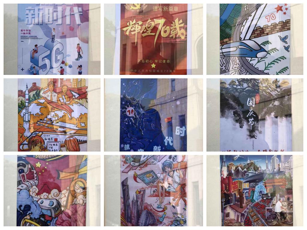 大赛征集到的作品围绕“点赞新时代”,以壁纸、图文、漫画、摄影的形式,或浓墨重彩地描绘祖国70年来取得的伟大成就,使人们深感骄傲与自豪;或记录祖国绚丽的风景和城市的繁荣,勾勒出一幅壮阔的国家图景;又或荡气回肠地展现出军人的飒爽英姿,表现中华民族坚韧不拔的精神气质。一幅幅独具特色和创意的作品,吸引了全校师生驻足欣赏。同学们用丰富的艺术形式传达着自己对祖国的热爱,展现出蓬勃向上的青春朝气。作为当代大学生,我们应不忘初心、牢记使命,积极为学校发展和祖国建设贡献力量。