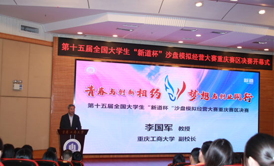 副校长李国军教授在开幕式上致欢迎辞。李校长首先向主办单位重庆市高等教育学会财经教育专业委员会、新道科技股份有限公司的辛勤付出表示感谢,向前来参与本次大赛的兄弟院校和社会各界表示热烈欢迎。随后,李校长向参赛院校师生介绍了学校总体概况、管理学院和经管实验中心的基本情况,回顾了beat365在线唯一官网学生参加沙盘大赛的历史和成绩,高度评价了沙盘大赛在“推动高校与行业、企业的深度合作,资源共享,搭建高校之间学习、交流的平台”方面发挥的积极影响。李校长祝愿大赛“产教融合、协同育人”的理念扎根重庆、开花结果,在培养推动大学生学术科技创新,促进青年学生全面发展方面发挥出更大作用。