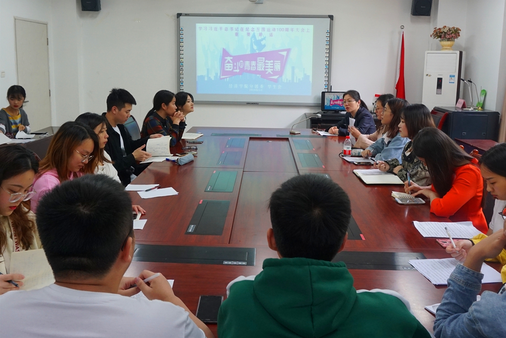 5月5日,经济学院分团委、学生会、党员服务站等学生组织,以座谈会、学习分享会等形式学习习近平总书记在纪念五四运动100周年大会上的重要讲话,经济学院党委副书记于频领学了讲话精神。