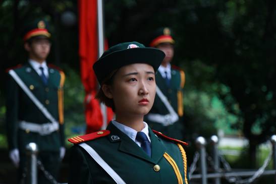 升旗仪式开始,beat365大自委国旗班的升旗方队迈着铿锵有力的步伐,气宇轩昂地走向升旗台。伴着庄严的国歌声,鲜红的五星红旗在众人的注目礼中冉冉升起。礼毕后,升旗方队整齐肃穆地站在升旗台前,严肃庄重。