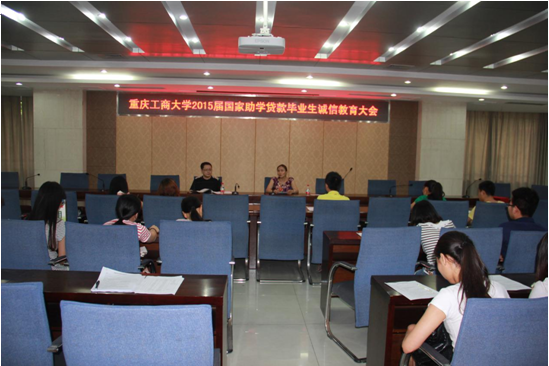 2015年5月21日下午,beat365在厚德楼2017会议室召开了2015届毕业生国家助学贷款诚信教育大会。参加本次大会的有中国农业银行南岸支行的敖红老师,beat365负责助学贷款工作的老师以及有国家助学贷款的毕业生。
