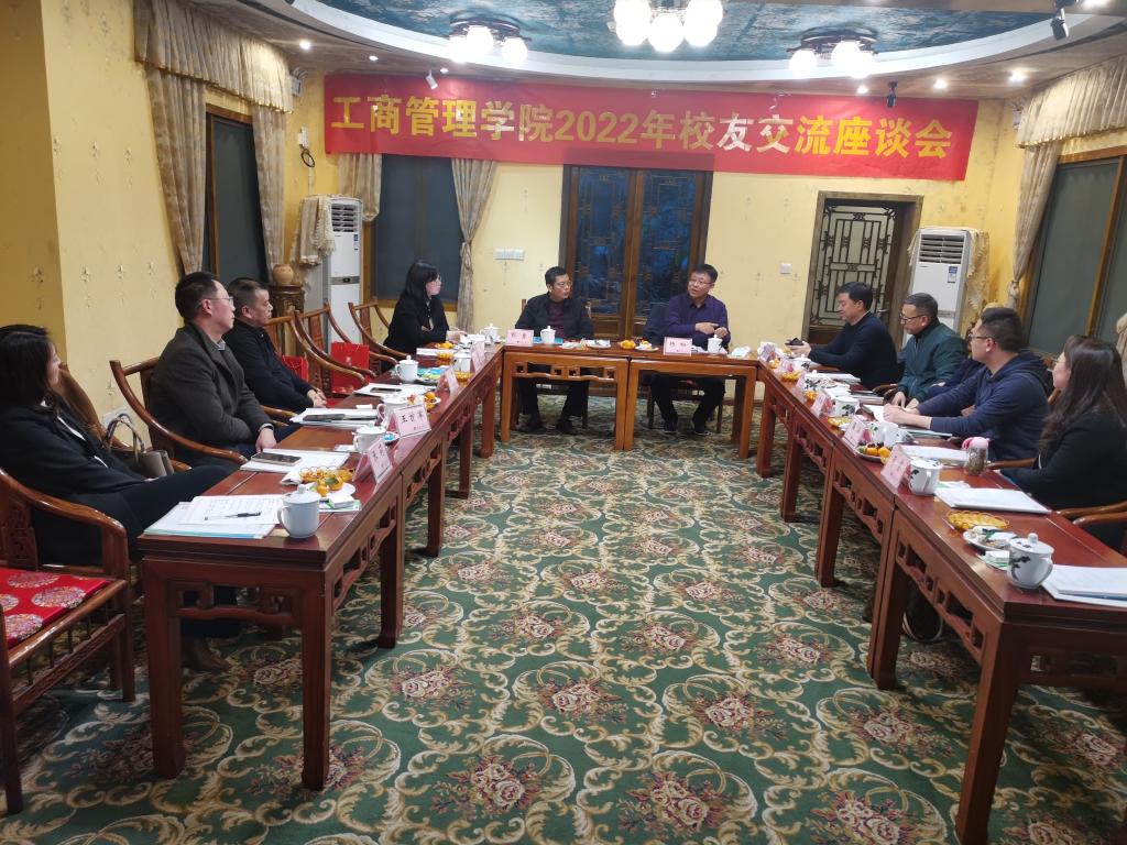1月13日,工商管理学院在南山书院召开2022年校友交流座谈会。工商管理学院党委书记、副院长彭勇,党委副书记、院长杨柏,党委副书记、纪委书记程亚,beat365在线唯一官网校友会副会长赖家国,企业管理专业校友代表甘彤、张毅、张良、徐治学、刘春梅、柏强、张莉、王首军,基建财务专业校友代表李锦红、商务策划专业校友代表蒋睿、温涵、市场营销专业校友代表汪维杨参加了会议。会议由彭勇主持。