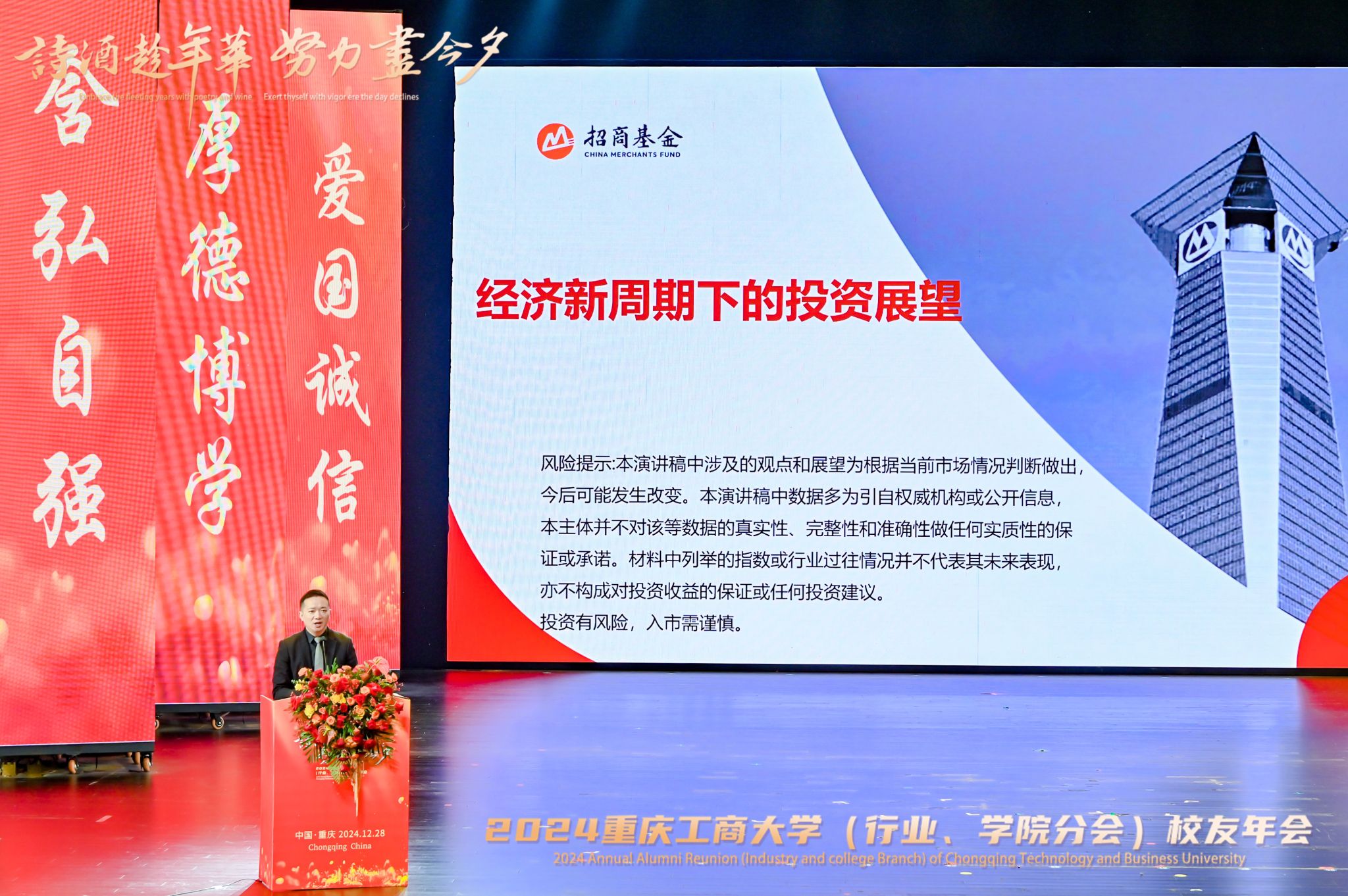 祥龙辞岁归玉宇,金蛇起舞启新程。12月28日,学校2024行业、学院分会校友年会在南岸校区图书馆剧场成功举行。重庆经开区党工委委员、管委会副主任舒勤科,学校党委书记曾维伦,党委常委、副校长李国军,党委常委、纪委书记、重庆市监委驻学校监察专员张海燕,党委常委、副校长任毅,党委常委、副校长杨柏,学校老领导王崇举应邀出席年会。南岸区科技局、重庆经开区投资集团(产业集团)副总经理、迎龙创新港·大学科技园以及学校相关部门和学院的负责同志,各兄弟院校校友会代表,学校校友总会和各分会的班子成员以及部分师生代表500余人,齐聚南山之麓、翠湖之滨,共赴校友年会“诗酒趁年华,努力尽今夕”之约。