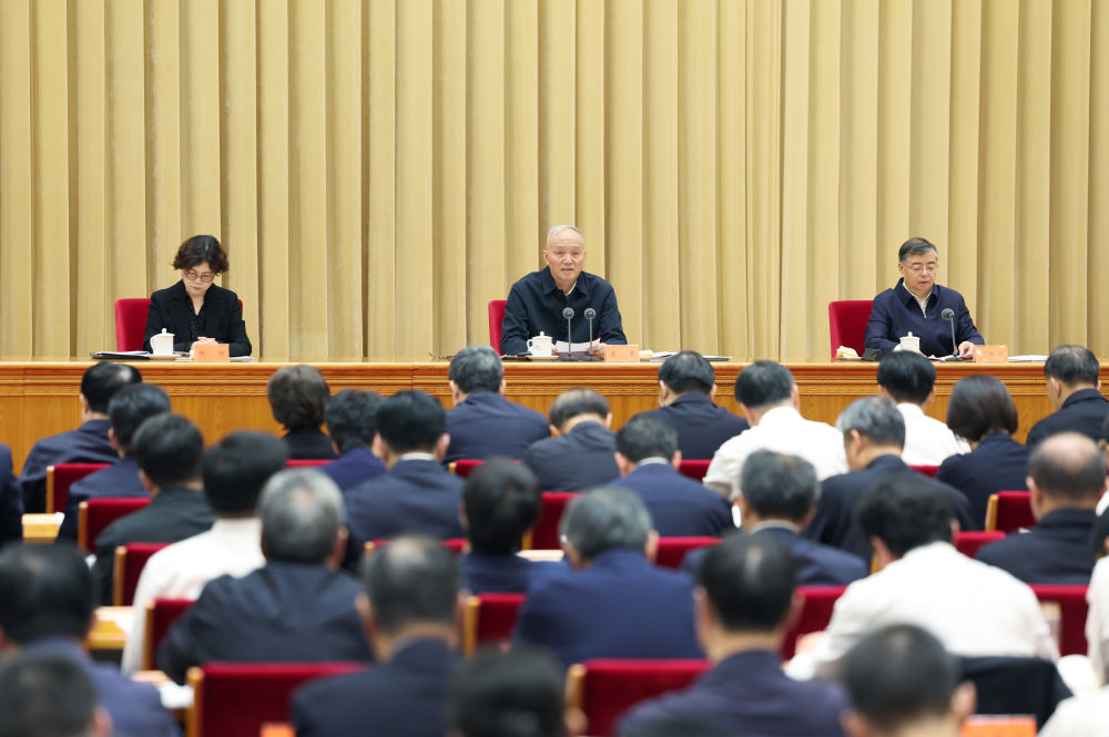 中共中央政治局常委、中央书记处书记蔡奇出席会议并讲话。)