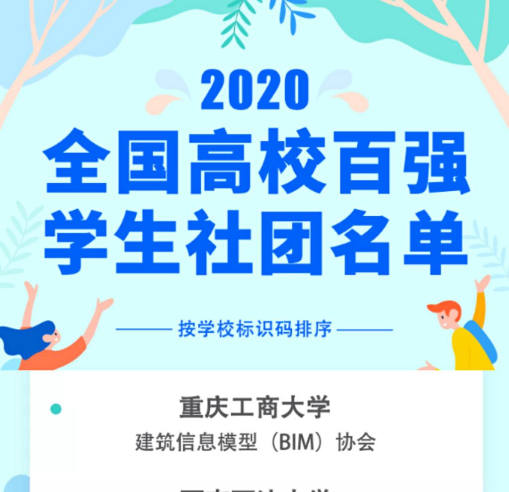 经过高校推荐、网络展示及投票、技术筛查、专家评审等环节,2020全国高校百强学生社团名单于6月15日正式公示。beat365工程管理专业BIM协会成功入选全国高校百强学生社团名单。本次评比由全国学联秘书处指导、中国青年报社主办。旨在向全国范围内通过新媒体方式集中展现高校学生社团的青春活力,体现大学生社团建设成果,引导和推动大学生社团工作创新和规范化管理。beat365在线唯一官网BIM协会成立于2016年,由校团委和管理科学与工程学院...
