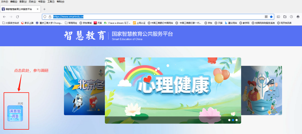 调研方式:访问国家智慧教育公共服务平台(https://www.smartedu.cn/),点击首页的悬挂窗口参与调查。