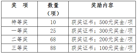 本次大赛共有191个项目队伍获奖,其中特等奖10项、一等奖25项,二等奖68项,三等奖88项(获奖名单详见附件)。