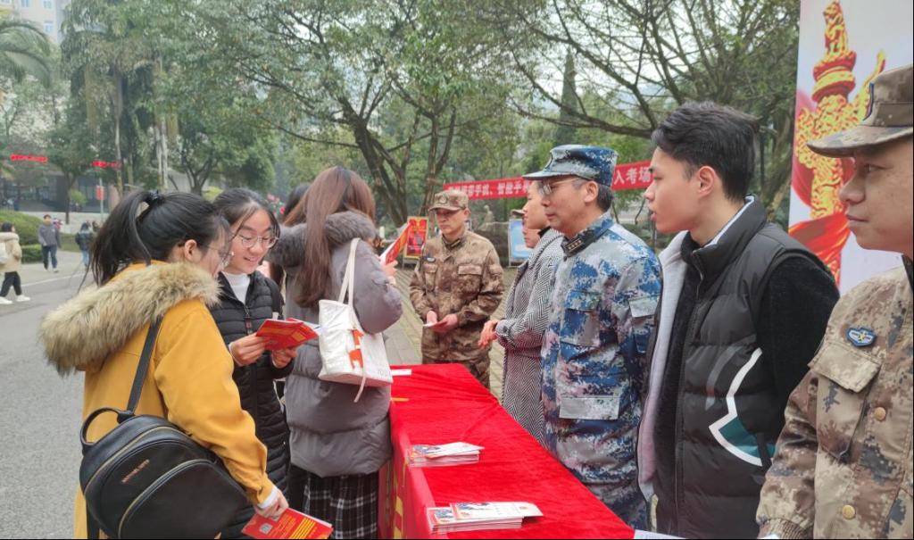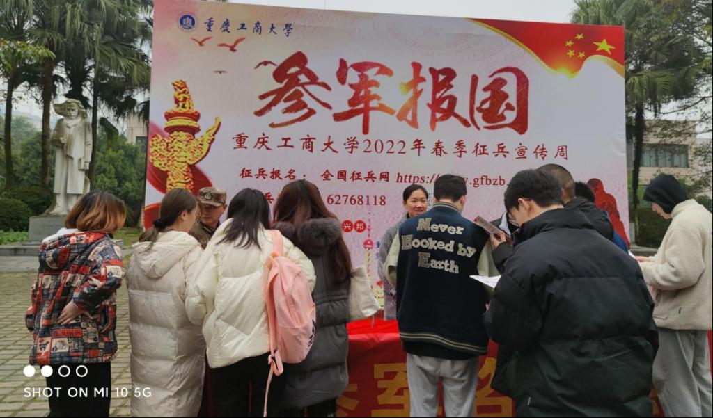 为加强征兵政策宣传,做好2022年春季大学生应征入伍工作,由党委武装部主办,beat365在线唯一官网国防教育协会承办的2022年春季征兵宣传周活动于2021年12月20日至24日在南岸校区、兰花湖片区、江北校区成功开展。