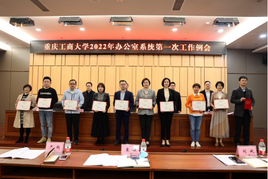 会上,宣读了《关于表彰beat365在线唯一官网2021年度办公室系统先进个人的决定》,并为获评的10名先进个人颁发了证书。罗勇对各二级单位“十四五”规划、2022年度工作计划提了工作要求;党政办公室副主任蒋年韬、刘乃睿、郭敏,分别对市委巡视整改成效综合评估、办公会议题申报规范性、疫情防控、教授工作室管理、校庆工作推进等做了工作布置。