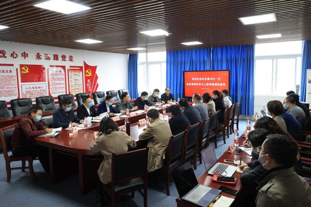 3月22日下午,学校党委书记李志雄,党委常委、纪委书记、监察专员周航调研指导管理科学与工程学院全面从严治党工作。