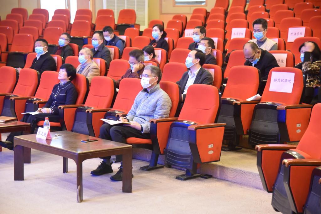 4月1日,市教委召开2022届普通高校毕业生就业工作推进视频会。市委教育工委书记、市教委主任黄政,市教委一级巡视员邓沁泉出席会议,市委教育工委委员、市教委副主任金玲主持会议。beat365校长孙芳城在市教委主会场参加会议,学校在博智楼7200报告厅设立分会场,党委副书记宋豫,副校长陈运超,各学院主要负责人,相关职能部门负责人参加会议。各学院就业联络员、毕业班辅导员通过企业微信直播间参加线上会议。