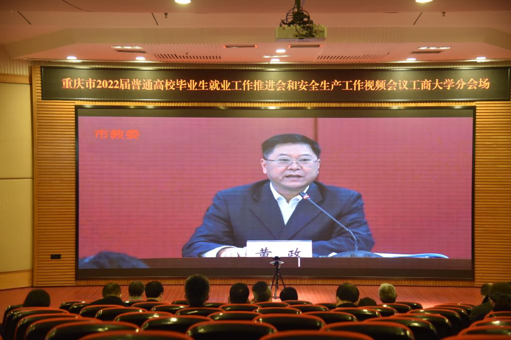 黄政指出,2022年全国高校毕业生规模首次突破千万,重庆市高校毕业生31.5万人,同比净增7.1万人,规模和增量均创历史新高。加上高职扩招部分人员类型复杂,数量较多,叠加疫情影响,经济下行,结构性矛盾突出等因素,就业工作形势十分严峻。他强调,各高校一要提高站位,深刻理解党中央、国务院提出关于就业是“六稳” “六保”之首的重要意义,准确把握习近平总书记、李克强总理的重要指示批示精神,认真研究教育部就业工作调度会议工作要求,抓住2022届毕业前最后100天关键时期,积极推进毕业生就业工作。二要准确把握今年高校毕业生就业中存在的新形势、新变化,科学研判、创新举措,书记校长要带头访企拓岗,了解用人单位需求,掌握毕业生适岗情况,加强与用人单位交流沟通,拓展就业岗位。三要准确把握我市高校毕业生就业工作的目标任务,大力拓展市场性岗位,用好用足政策性岗位,适时调整学校就业工作策略部署,确保全市高校毕业生就业大局基本稳定。四要及时了解掌握毕业生就业意愿和思想动态,及时开展有针对性的就业指导,精准发力,促进毕业生高质量就业。五要积极推动就业与招生培养动态联动改革,推动建立学科专业去向落实率红黄牌提示制度,提升人才培养质量。六要加强线上线下就业服务,妥善安排疫情防控和就业工作,在确保防疫安全的情况下积极推进各类招聘活动。七要加强领导,强化组织保障和队伍建设,落实考核监督,确保各项工作落地落实。