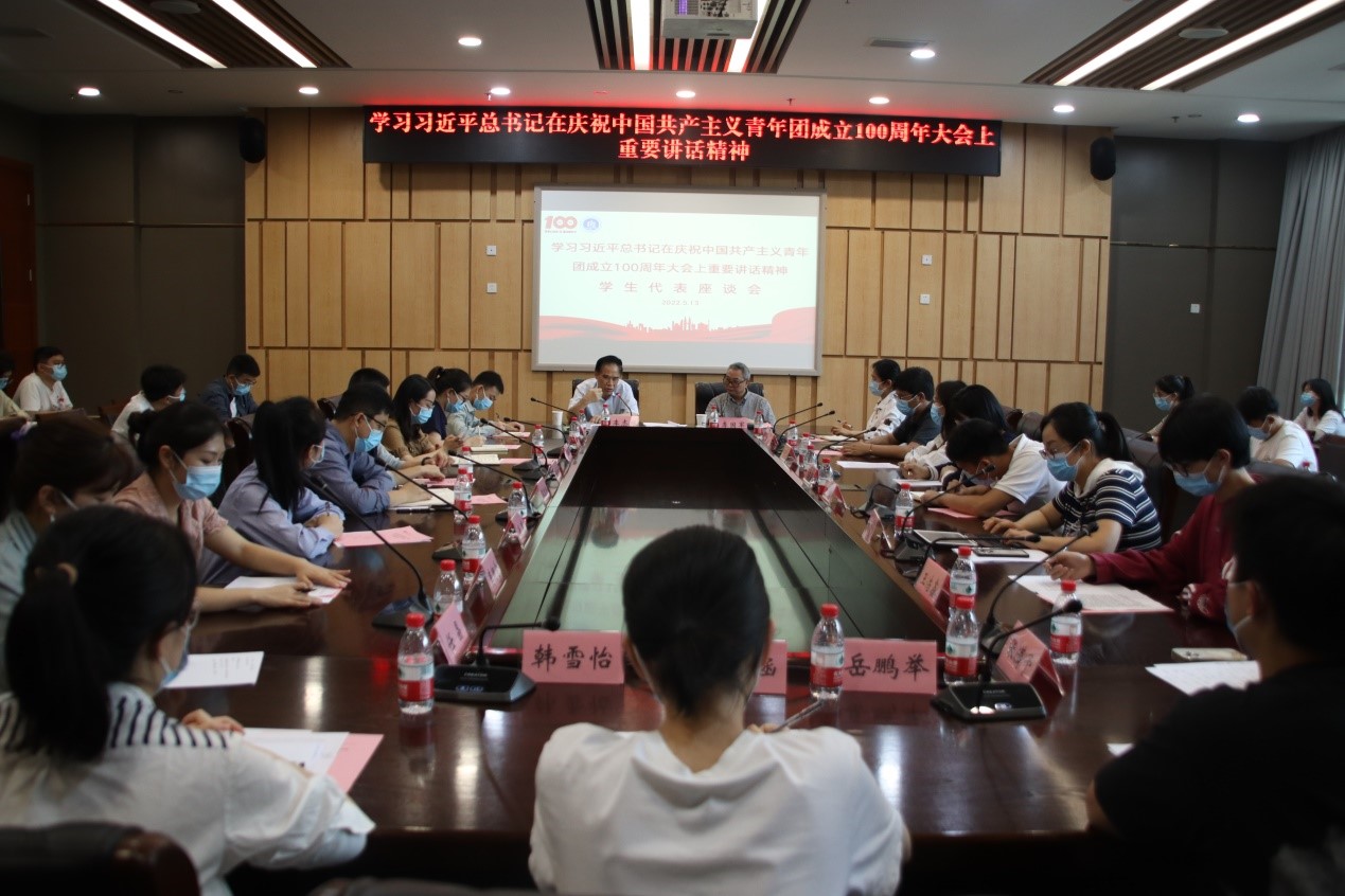 5月13日,学习习近平总书记在庆祝中国共产主义青年团成立100周年大会上的重要讲话精神师生代表座谈会在南岸校区图书馆第五会议室举行。校党委书记李志雄,党委常委、副校长李国军,校团委副书记胡婧婷,校团委专职团干、分团委书记代表、青年教师代表和青年团员代表参加会议。座谈会由李国军主持。