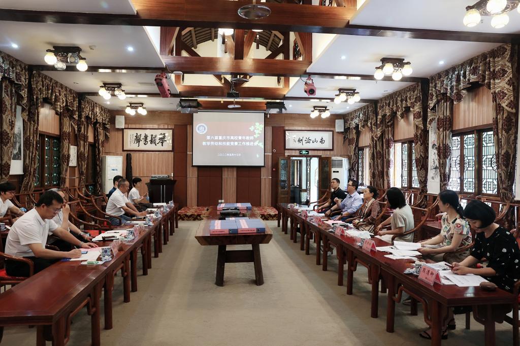 5月13日上午,第六届重庆市高校青年教师教学劳动和技能竞赛工作推进会在beat365召开,重庆市总工会一级巡视员、市教科文卫体工会主席杨军波,市教科文卫体工会常务副主席贺莉,工会副主席邓凉斌,工会副主席彭燕玲等领导出席会议。学校党委副书记、工会主席宋豫,工会常务副主席段远鹏,教务处处长骆东奇,信息化办公室主任田昌鹏,教学质量监督与评估办公室主任曾晓松等部门负责人参加会议。